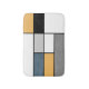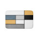 Abstract modern art with colorful (navy blue, grey, black, yellow, white) rectangles in Mondrian style on white background