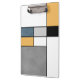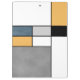 Abstract modern art with colorful (navy blue, grey, black, yellow, white) rectangles in Mondrian style on white background