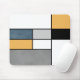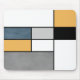 Abstract modern art with colorful (navy blue, gray, black, yellow, white) rectangles in Mondrian style on white background