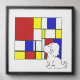 Chamomile loves art! In this cute illustration Chamomile is admiring a Mondrian-Inspired artwork. With the fun text “Home is Where the Art is”, you can delete that text if you wish, but why would you!