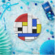 Design inspired by dutch painter Piet Mondrian in red, blue, yellow, and black