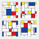 Mondrian Minimalist De Stijl Modern Art in Red, Blue, Yellow and White Color Blocks Design.