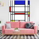 Mondrian Modern Art wrapped canvas has a section like Composition 10 by Pieter Piet Mondrian in red , blue , yellow , black and white , the most well know of the De Stijl art movement group that used three primary colors with black lines on a white background