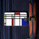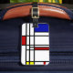 Mondrian Modern Art luggage tag has a section like Composition 10 by Pieter Piet Mondrian in red , blue , yellow , black and white , the most well know of the De Stijl art movement group that used three primary colors with black lines on a white background