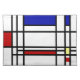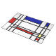 Mondrian Modern Art placemat has a section like Composition 10 by Pieter Piet Mondrian in red , blue , yellow , black and white , the most well know of the De Stijl art movement group that used three primary colors with black lines on a white background