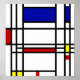 Mondrian Modern Art poster has a section like Composition 10 by Pieter Piet Mondrian in red , blue , yellow , black and white , the most well know of the De Stijl art movement group that used the three primary colors with black lines on a white background