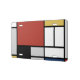 Piet Mondrian began to create the definitive abstract paintings in the 1920s for which he is best known for. He kept his palette limited to white, black, and gray in addition to the three primary colors, red, yellow, and blue. His compositions constructed from thick, black horizontal and vertical lines that outline the various rectangles of color. This was the simplification of the pictorial elements, essential for Mondrian's creation of new abstract art. The assortment of blocks of color and lines differing in width creates a sense of rhythm that flows across the canvas, echoing that of modern life. This asymmetrical piece, Composition with Large Red Plane, Yellow, Black, Gray, and Blue, originally painted in 1921 features one large dominant block of color, in this painting red, a common theme seen in his later works. This is balanced by the distribution of the smaller blocks of yellow, blue-gray, and white.
