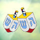 Celebrate Hanukkah in your home, classroom or business with this fabulous window cling featuring a happy, artsy pair of dreidals designed in bright primary colors & abstract shapes (inspired by Mondrian) plus black on white polka dots overlaid with Hebrew letters of the game.