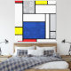 Mondrian Minimalist De Stijl Modern Art Retro Circles in Red. Blue, Yellow And Grey Color Blocks Design.