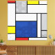 This simple design features modern and graphic color blocks, bold black lines and bright colors with retro circles pattern. It is inspired by Piet Mondrian's abstract works and movement.