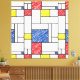This simple design features modern and graphic color blocks, bold black lines and bright primary colors in freestyle sketched scribbles. It is inspired by Piet Mondrian's abstract works and movement.