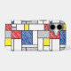This simple design features modern and graphic color blocks, bold black lines and bright primary colors in freestyle sketched scribbles. It is inspired by Piet Mondrian's abstract works and movement.