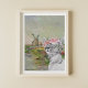 Beautiful and artistic compilation features Claude Monet's CHAMP TULIPES EN HOLLANDE as background with portrait of gray cat with watercolor floral crown overlay.