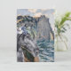 Beautiful and unique greeting card features Monet's Cliff of Aval, Etretat as a background to a watercolor black horse with floral crown portrait overlay.