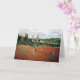 Monet Field of Red Poppies greeting card. Oil on canvas from 1879. Monet painted several different poppy fields during his career. This particular painting features several young women in sundresses and sunhats collecting the red flowers before a river on a slightly cloudy summer day. A pretty gift for fans of Monet, Impressionism, Red Poppies, and flower art.