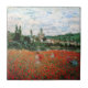 Monet Field of Red Poppies tile. Oil on canvas from 1879. Monet painted several different poppy fields during his career. This particular painting features several young women in sundresses and sunhats collecting the red flowers before a river on a slightly cloudy summer day. A pretty gift for fans of Monet, Impressionism, Red Poppies, and flower art.