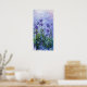 Monet Lilac Irises poster. Oil painting on canvas from 1917. Monet painted irises throughout his career, this is one of his final iris paintings and certainly one of his most haunting. The work is heavily impressionistic and the dark purple irises almost seem to be floating in water above their dark green foliage, the sky above is soft blue and purple. A beautiful gift for fans of Claude Monet, Impressionism, iris paintings and French art.