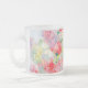 Frosted Glass Coffee Mug featuring Claude Monet’s flower painting. Beautiful red, yellow, and white peonies in a blue vase. A great Monet gift for fans of impressionism and French art.