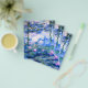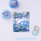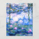 A Monet pink water lilies flyer featuring beautiful pink water lilies floating in a calm blue pond with lily pads. A great Monet gift for fans of impressionism and French art. Serene nature impressionism with lovely flowers and scenic pond landscape.