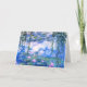 A Monet pink water lilies folded greeting card (inside is blank) featuring beautiful pink water lilies floating in a calm blue pond with lily pads. A great Monet gift for fans of impressionism and French art. Serene nature impressionism with lovely flowers and scenic pond landscape.