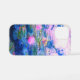 A Monet iPhone 12 Mini Case featuring beautiful pink water lilies floating in a calm blue pond with lily pads. A great Monet gift for fans of impressionism and French art. Serene nature impressionism with lovely flowers and scenic pond landscape.