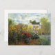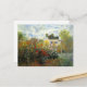 Monet Rose Garden postcard. Oil on canvas from 1883. French Impressionist Claude Monet created some of the most beautiful garden landscapes near his home in Giverny. This is one of his earlier works depicting a rose garden in the morning near Argenteuil. The work features yellow, red and white roses blooming peacefully in front of a home as a couple walks in the distance near a fence and swaying trees. A pretty gift for fans of Monet, Rose Paintings, and Impressionist Landscapes.