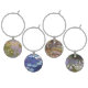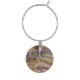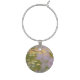 Wine charms with four paintings by the French artist Claude Monet (1840-1926) of various water lily landscapes. He was from the impressionist period. His water lily landscapes were inspired by his own garden in Giverny, France.