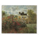 The Artist's Garden in Argenteuil (A Corner of the Garden with Dahlias) (1873) by Claude Monet is a vintage impressionism fine art floral nature painting. A country farm house is in the background. A couple in love is walking past a romantic spring season garden with blooming roses and other flowers.