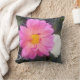 Pink and white flowers surrounded by green foliage on a pillow.