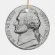 Lightweight, smooth, pure white ornament with nice sheen. Perfect size to be seen from across the room ... and to attract closer inspection! Price was great for ordering enough for the whole family! Clear, bold black design just as requested. Matches the order exactly. Just so nice!