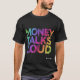 A bold t-shirt design featuring the phrase "Money Talks Loud" in a vibrant, multicolored gradient. The letters have a slightly distressed texture for a worn-in, vintage feel.