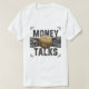 A design that combines luxury and modernity, where an elegant gold coin stands out in the center, surrounded by symbols of power and wealth. The bold print reflects a clear message: “Money talks,” giving the design a touch of dominance and power.