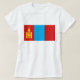 The front of this t-shirt boldly displays the Mongolian flag with its distinctive yellow motif over a red band with blue and red bands further right. This is matched at the back by an attractive map of Mongolia.