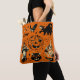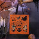 Whether you're heading out trick-or-treating or just toting some horror books home from the library, this monogrammed tote bag is the perfect choice for getting into the Halloween spirit. It features a collage of vintage style Halloween graphics with cats, a bat, a witch, a jack-o-lantern pumpkin and an owl in black and cream set against an orange background. This bag is ready to be personalized with your initials. The design and personalization appears on both sides of this tote bag.