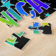This exciting and fun birthday-themed jigsaw puzzle design has the message "HAPPY BIRTHDAY, MONICA" with the characters having a colorful rainbow spectrum inspired gradient pattern, in addition to a vibrant field of stars background pattern. An exciting puzzle like this might be a fun way to acknowledge the birthday of somebody named Monica. [~Z0000468]