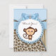 Boys monkey baby shower thank you cards with adorable little monkey on a cute blue and brown safari print background. This cute flat style brown and blue monkey baby shower thank you card is easily customized for your event by adding your message, font style, font size & color, and wording, or leave blank to add your handwritten message.