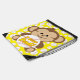 A cute brown smiling monkey holds a big white and red stitched baseball with yellow outlined text that reads I Love Dad on a drawstring backpack perfect for both boys and girls! The bag background is bright yellow with lots of little white baseballs!