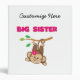 A cute monkey with a pink flower swings by her tail from a branch and pink text reads "Big Sister" on big sister T-shirts, key chains, cards, stickers, tote bags, magnets, mousepads, pillows, and other big sister apparel and gifts!