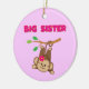 A cute monkey with a pink flower swings by her tail from a branch and pink text reads "Big Sister" on big sister T-shirts, key chains, cards, stickers, tote bags, magnets, mousepads, pillows, and other big sister apparel and gifts!