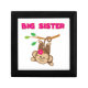 A cute monkey with a pink flower swings by her tail from a branch and pink text reads "Big Sister" on big sister T-shirts, key chains, cards, stickers, tote bags, magnets, mousepads, pillows, and other big sister apparel and gifts!