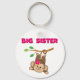 A cute monkey with a pink flower swings by her tail from a branch and pink text reads "Big Sister" on big sister T-shirts, key chains, cards, stickers, tote bags, magnets, mousepads, pillows, and other big sister apparel and gifts!