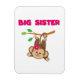 A cute monkey with a pink flower swings by her tail from a branch and pink text reads "Big Sister" on big sister T-shirts, key chains, cards, stickers, tote bags, magnets, mousepads, pillows, and other big sister apparel and gifts!