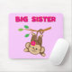 A cute monkey with a pink flower swings by her tail from a branch and pink text reads "Big Sister" on big sister T-shirts, key chains, cards, stickers, tote bags, magnets, mousepads, pillows, and other big sister apparel and gifts!