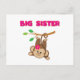 A cute monkey with a pink flower swings by her tail from a branch and pink text reads "Big Sister" on big sister T-shirts, key chains, cards, stickers, tote bags, magnets, mousepads, pillows, and other big sister apparel and gifts!