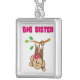 A cute monkey with a pink flower swings by her tail from a branch and pink text reads "Big Sister" on big sister T-shirts, key chains, cards, stickers, tote bags, magnets, mousepads, pillows, and other big sister apparel and gifts!