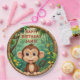 Add some cheeky fun to the table with this personalized monkey cartoon frame PAPER PLATE, perfect for a kids’ birthday or jungle-themed party!