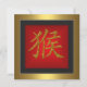 Monkey Chinese Symbol Red Gold Frame Invitation