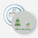 Cute monkey wearing a green and red Christmas elf hat next to a Christmas tree on a starry night. Merry Christmas!