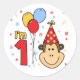 First birthday fun "I'm 1" with cool monkey face, large number 1 and colorful balloons. If you love jungle, safari and zoo animals you'll love this monkey in a birthday hat.