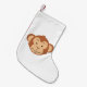 Perfect! Exactly what I ordered! I uploaded a picture of my blue chow, and the screen print was incredible. the back side of the stocking was the red and black checkered print. my puppy's name was also printed on the cuff of the stocking. PERFECT! Highly recommend this product! My puppy's name was screen printed onto the cuff of the stocking, the font was perfect!